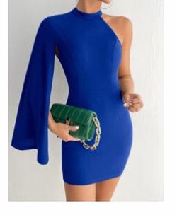 Asymmetrical Neck Cloak Sleeve Bodycon Dress Royal Blue$15Pembroke Pines, FL