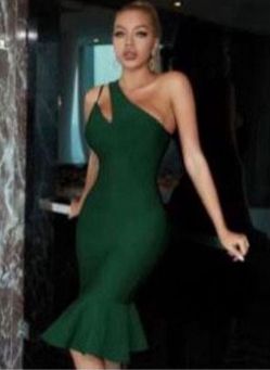 Cut Out One Shoulder Mermaid Hem Bandage Dress Dark Green$40Pembroke Pines, FL