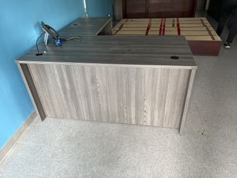New 60” x 70” single cabinet L shaped desk in gray finish, reversible desk$300Chicago, IL