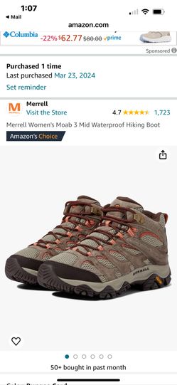 Merrell Women's Moab 3 Mid Waterproof Hiking Boot, Size 8.5-NEW IN BOX - $100 (oakland piedmont / montclair)$75Piedmont, CA