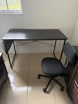 Black desk with storage pocket and swivel chair $50Pembroke Pines, FL
