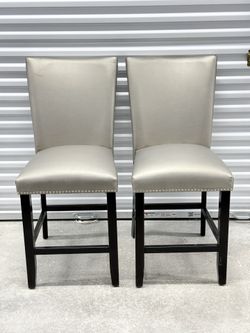 Set of bar stools upholstered in light gray with studded trim$50Miramar, FL