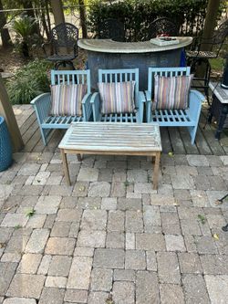 Solid Teakwood Painted Patio Set 4 Piece Set (Teakwood Multicolored Table Separate ).$350Montgomery, TX