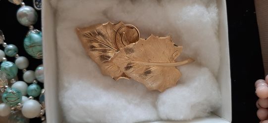 Elegant gold tone double leaf design brooch$12Chicago, IL