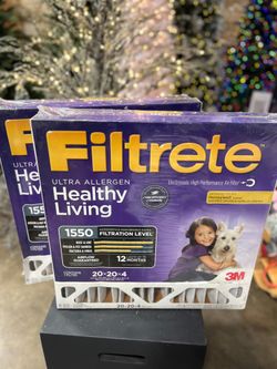 Filtrete 20x20x4, AC Furnace Air Filter, MPR 1550 DP, Healthy Living Ultra Allergen Deep Pleat, 2-Pack (Actual Dimensions 19.88 x 19.88 x 4.31)$45Bolingbrook, IL