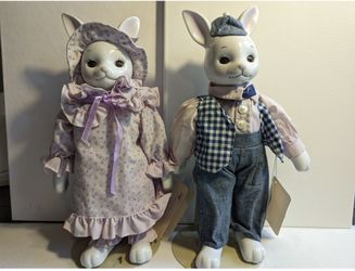 Two Country-Kins Porcelain Dolls by Russ-Barton & Belida Bunny with Stands and tags$30Las Vegas, NV