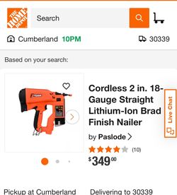 P Pasiode®* 0010p° 18 Ga Cordless Li-ion Brad Nailer Clavadora de puntillas inalámbrica, ion litio,$295Brookhaven, GA