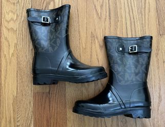 MICHAEL Michael Kors Mid Calf RainBoots Women’s 6M Black/Brown Logo Flawed* Read$40Chicago, IL