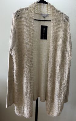 Black Rivet Open Cardigan Women’s Large Cream/Gray Fuzzy Shimmer Sweater New$25Chicago, IL