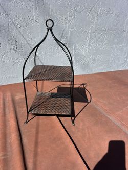 Wrought-iron Black Metal Wicker Two Tier Server Stand Desert Decorative Tray$25Miami, FL