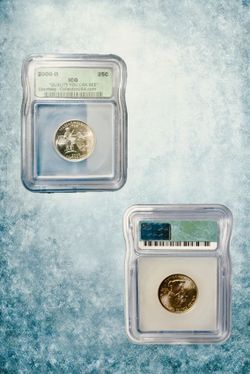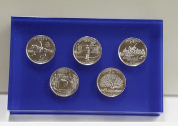 1999 State Quarter Set (5) Clad Coins in Blue Lucite Paperweight$10Mesa, AZ