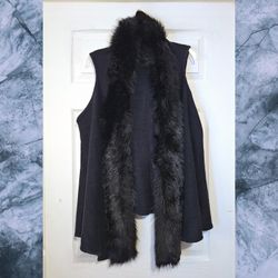 'Kaleidoscope' black faux fur trim knit vest, hook/eye closure, shawl collar L/XL$20Millville, MA