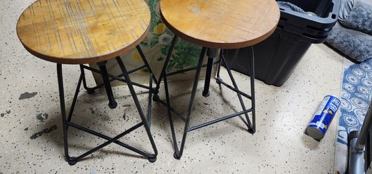 Pair Of Adjustable, Heavy, Wrought Iron Stools With Distressed Wood Tops$60Midland, NC