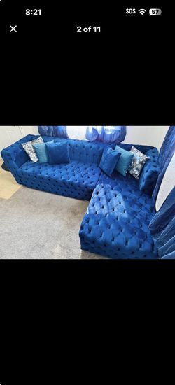 FREE DELIVERY AND INSTALLATION - Jewel 2pcs. Blue Sectional in Velvet$750Oceanside, CA