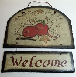 Apple Berry Slate Welcome Plaque BaublesnBling Rustic Star Leather Hanger 3 LB$20East Freedom, PA