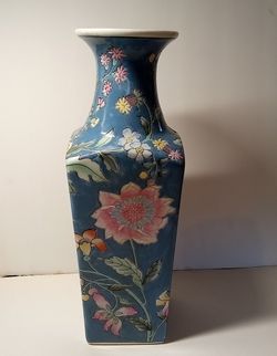 Vintage H.F.P.Macau 12.5" Tapered Square Vase Handpainted French Blue Pink Lotus$75East Freedom, PA