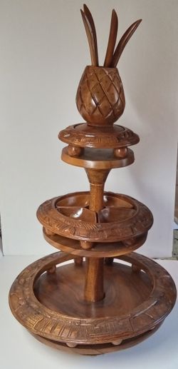 VTG Monkey Pod Pineapple Lazy Susan 3 Tier Serving Tray Handcarve 1950 Pool/Tiki$89East Freedom, PA