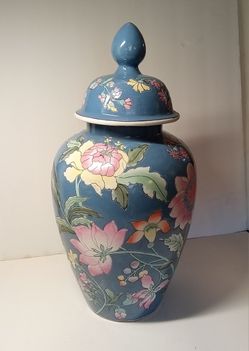 Vintage HFP Macau Oriental Ginger Jar 14" With Lid French Blue Pink Lotus Decor$89East Freedom, PA