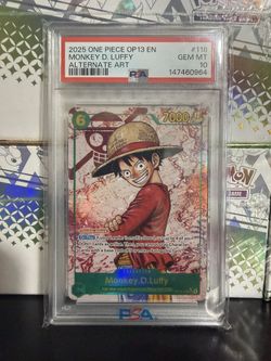 Monkey D Luffy Op13-118 PSA 10 Carrying On His Will SEC Alt Art$350Claremont, CA