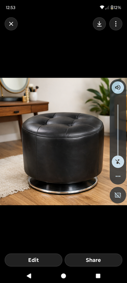 Black Round Tufted Leather Ottoman Stool Mid Century Modern Swivel Base 16x18$85Huntington Beach, CA