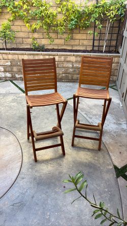 Pair of teak, folding bar height chairs$150Camarillo, CA