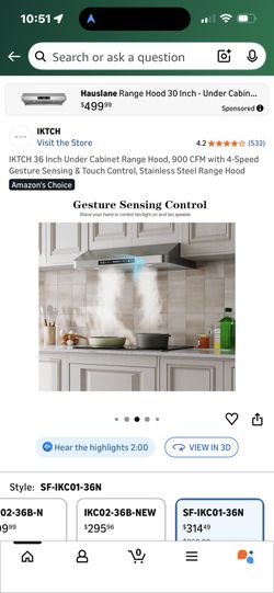 IKTCH 36 Inch Under Cabinet Range Hood$200Chandler, AZ