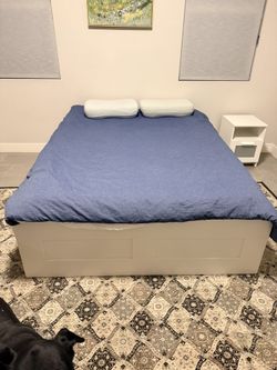 White IKEA Queen Bed Frame Set Night Stand $250Las Vegas, NV