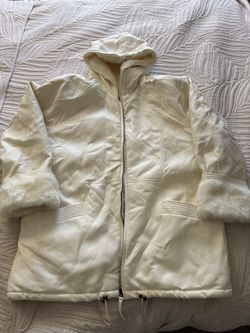 Womens Komitor Faux Leather Jacket White Fur Hood Y2K Coat Size L$45Hoffman Estates, IL