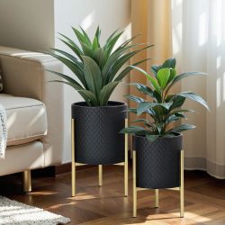 Geometric metal indoor planter with stand, set of 2 ,PL943-B$30Ontario, CA