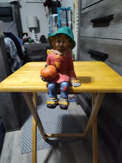 Hand Painted Ceramic Scarecrow With Pumpkin Shelf Sitter Halloween Fall Vintage $15Smoke Rise, GA