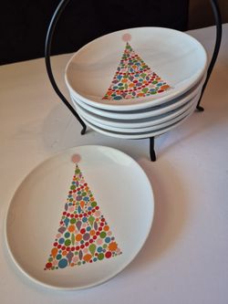 6 Christmas Dessert Appetizer Plates 6" Includes Holder Like New$10Los Angeles, CA
