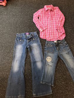 2 pair Girls Old Navy Jeans with plaid top$15Natick, MA