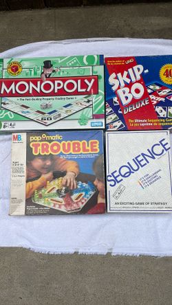 4 Games: Monopoly, Skip-Bo, Trouble And Sequence$60Corona, CA