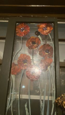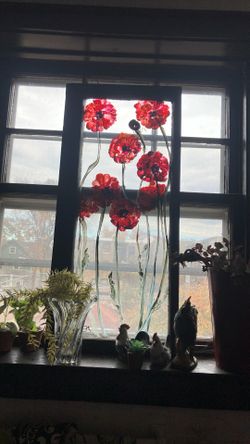 Red Flowers On Glass. Hand Painted Signed Not Sold$55River Forest, IL