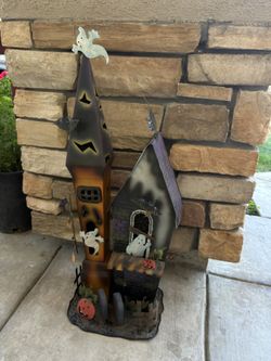 Haunted Black Cat Castle Halloween 2000 Metal Painted House$40Stockton, CA