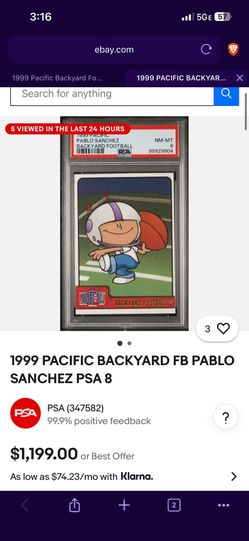RARE TCG Trading Card Pablo Sanchez Back Yard Football 1999$1,199Grayslake, IL