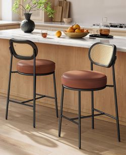 New Bar Stools Set of 2, Bar Height Stools with Rattan Back and Metal Legs, 25.1-Inch Tall Counter Chairs, Modern Leather Upholstered Barstools for Ki$74Las Vegas, NV