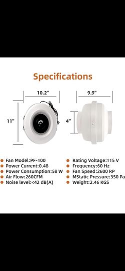 4 inch Radon Fan Inline Centrifugal Fan$70Las Vegas, NV