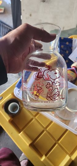 Offered is a vintage glass carafe featuring Snoopy and Wood$20Fountain Valley, CA