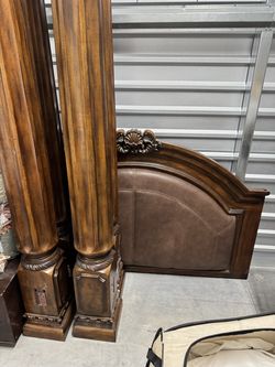 Grande Luxe Pillar King Bed Frame Real Solid Wood and Leather headboard$400North Las Vegas, NV