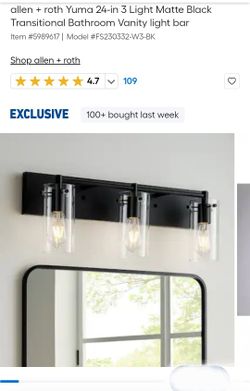 Allen +Roth 24in 3 Light Matte Black Vanity Light Retail Price $90 $35Lancaster, CA