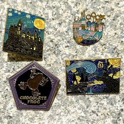 4 Harry Potter Pins Castle Van Gogh Starry Night Quidditch Chocolate Frog Enamel$40Downey, CA