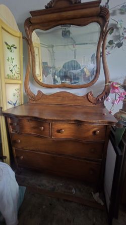 Antique Victorian Serpentine Dresser with Mirror