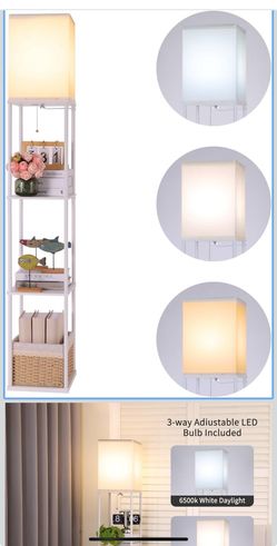 Floor Lamp with Shelves, Modern Square Standing Lamp with 3 Color Temperature Bulb, Corner Display Bookshelf Lamp for Living Room, Bedroom and Office($35San Antonio, TX