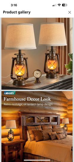 LEDIARY 18.72" LED Vintage Lantern Flickering Flame Table Lamps for Bedrooms Set of 2, Small Farmhouse Rustic Vintage End Table Lamps, Halloween Decor$50San Antonio, TX