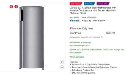 LG 6.0 Cu Ft Single Door Refrigerator In Box Unopened$275San Diego, CA