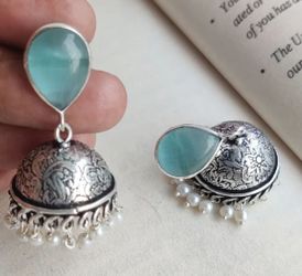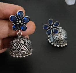 Blue Jhumka Silver Brass Earring Desi Ethnic Wedding$16San Diego, CA