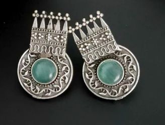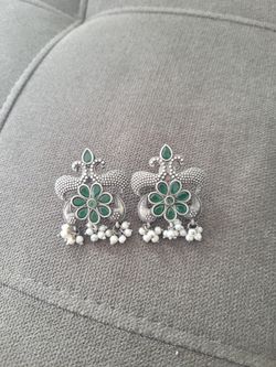 Green Silver Dangle Earrings Ethnic With Sound$13San Diego, CA
