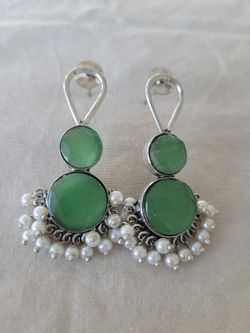 Green Stones And White Pearls Drop Earrings$13San Diego, CA