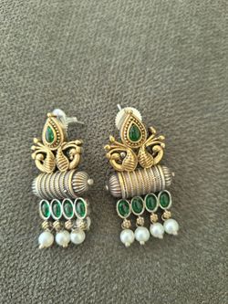 White Stone Jhumka Brass Earrings Small Pearls$13San Diego, CA